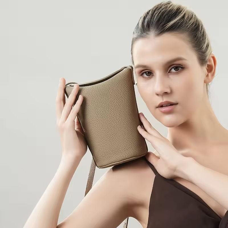 • Women's Crossbody Bag Soft Genuine Cowhide Leather Zip High-End Polyester Small Size Autumn Fashion Style